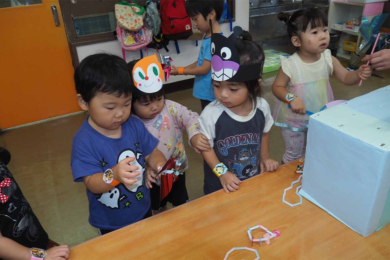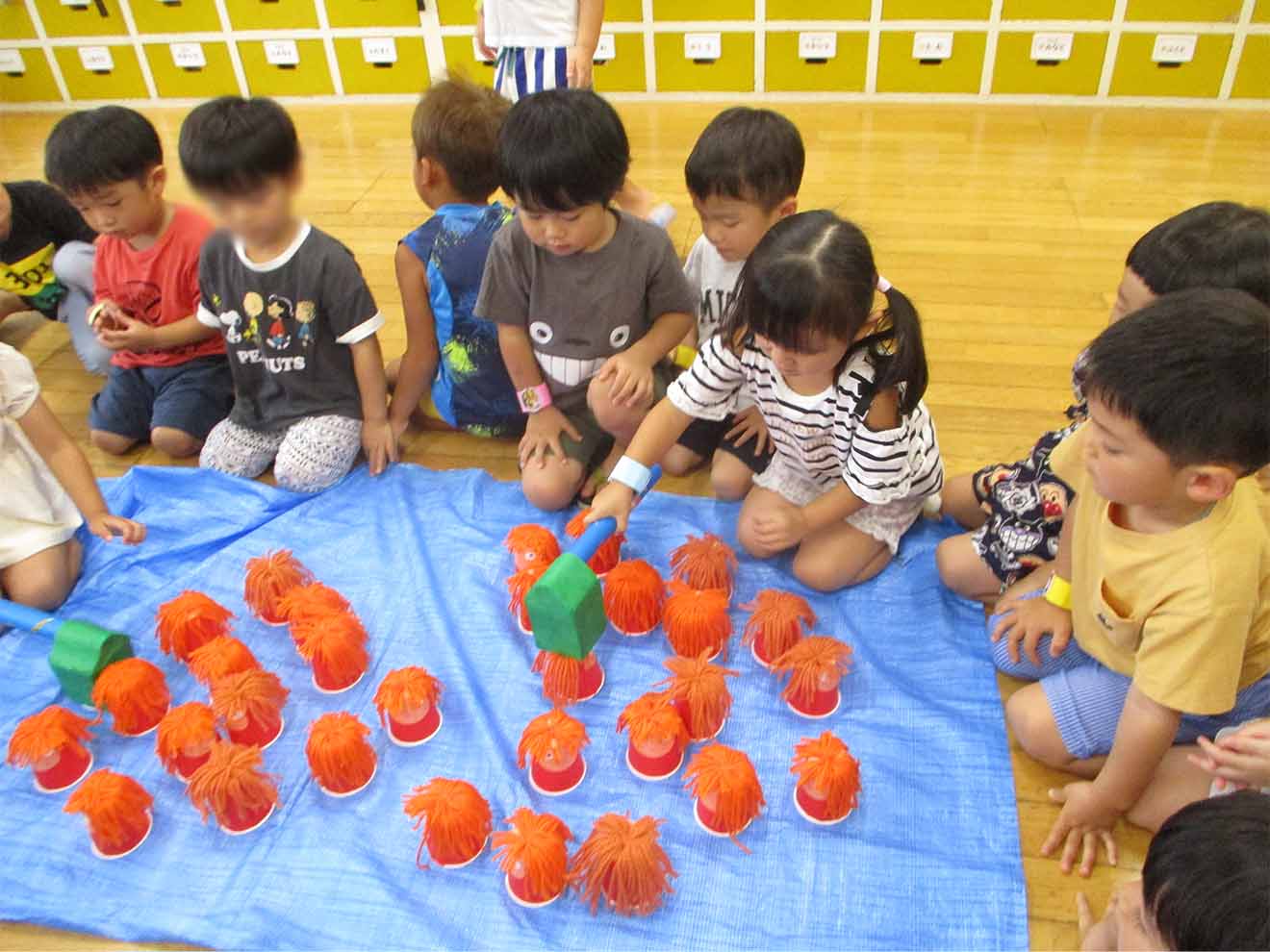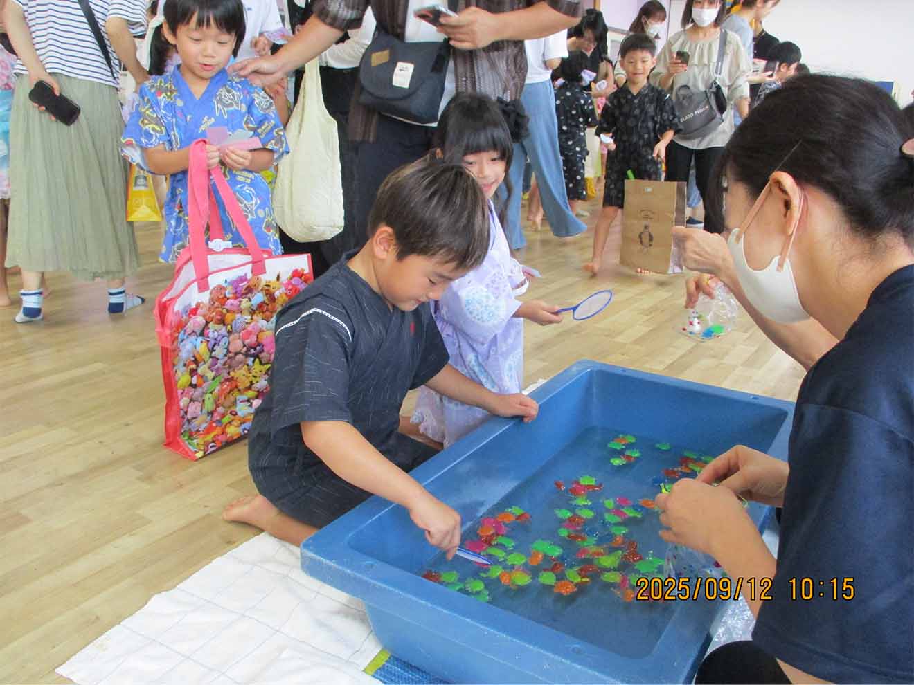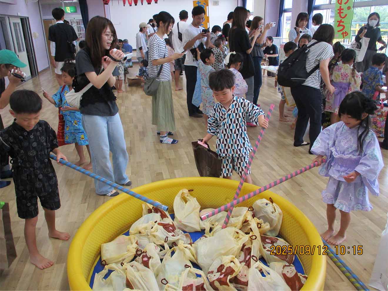 各クラスでお店やゲームを楽しみました。当日は雨でしたが、ホールでおみこしわっしょいや、勇気音頭を踊り、太鼓の音が園内に鳴り響きました。