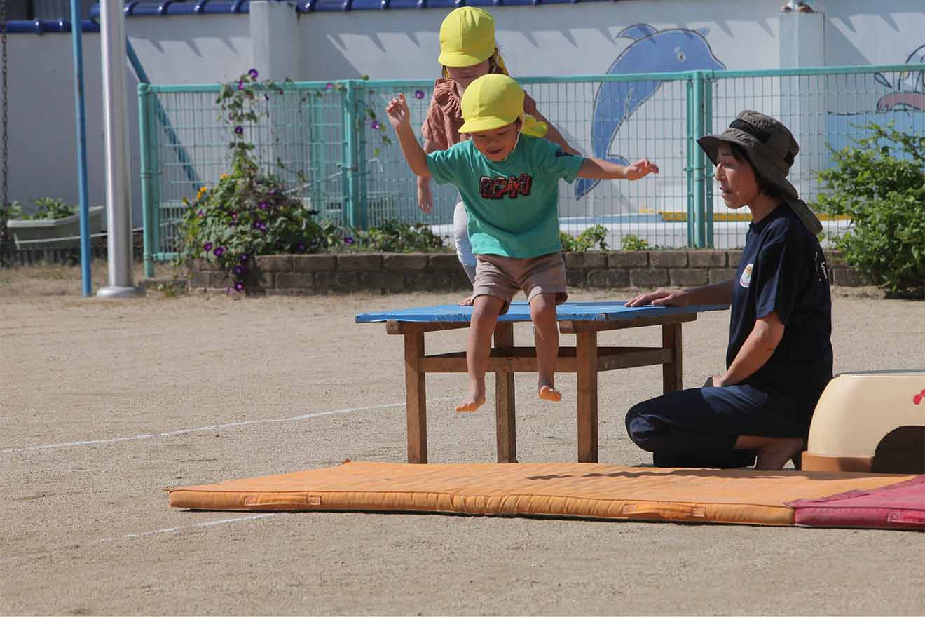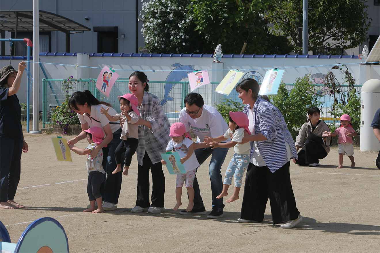 アンパンマンになりきってリズムを踊ったよ。かけっこも親子競技もお家の人と頑張りました!