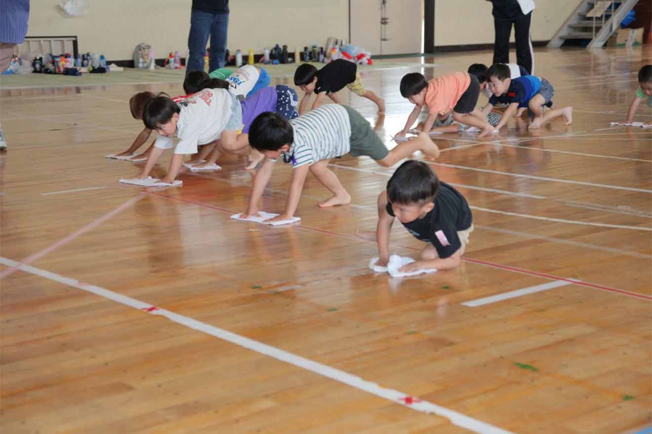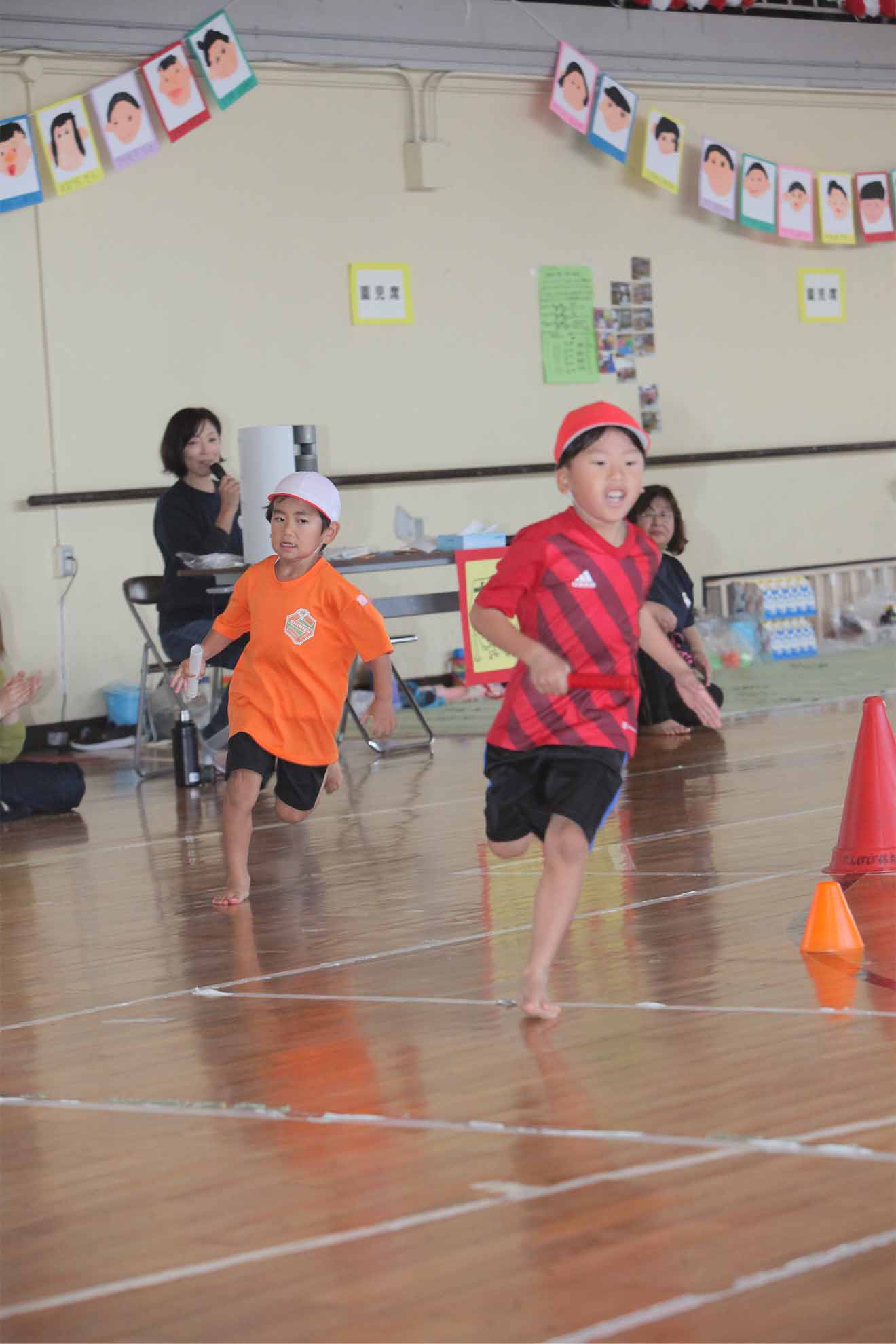 (あひる組) 今年度からあひる組も一緒に運動会に仲間入り。お家の人の応援を力にゴールを目指して頑張ったね。
