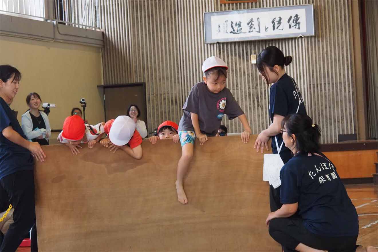 (つばめ組) つばめ組さんは、最後の運動会。走りとび、逆上がり、130センチの戸板のぼり!練習の成果を出し切り、どの競技も頑張りました。
