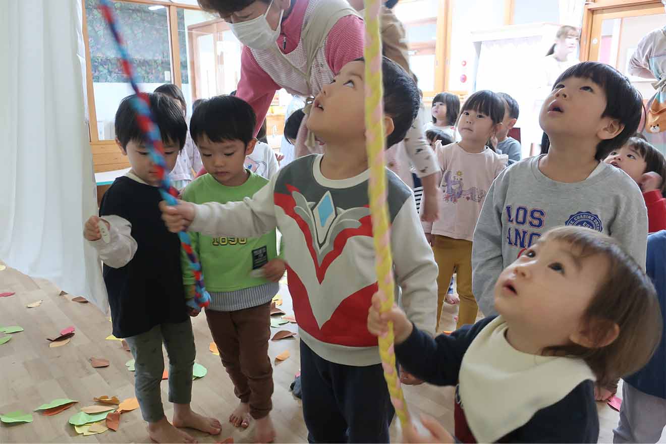 保育室にたんぽぽ神社を設定。一人ひとり「これからも元気に大きくなれますように」と手を合わせてお参りをしました。