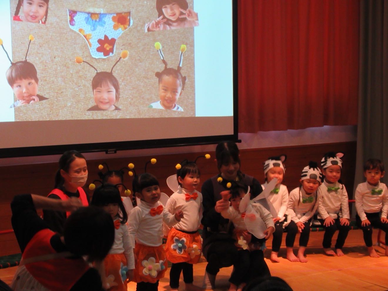 クラスで作り上げた表現発表会。一人ひとりの個性があふれていました。緊張する様子もありましたが、堂々とセリフを言う姿や成長した姿をお母さんやお父さん、たくさんの人に見せることができました。