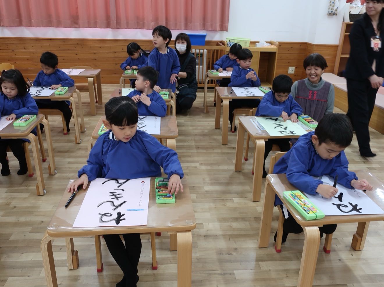 5歳児が一人ひとり「大きくなったら」をテーマに絵を描き、表彰をしてもらいました。「けいさつかん」や「スケボーせんしゅ」などみんなが憧れる姿になれるといいね。また、年金事務所の方より、筆ペンの使い方を教わりました。真剣な表情で筆を動かす姿、とってもかっこよかったよ。