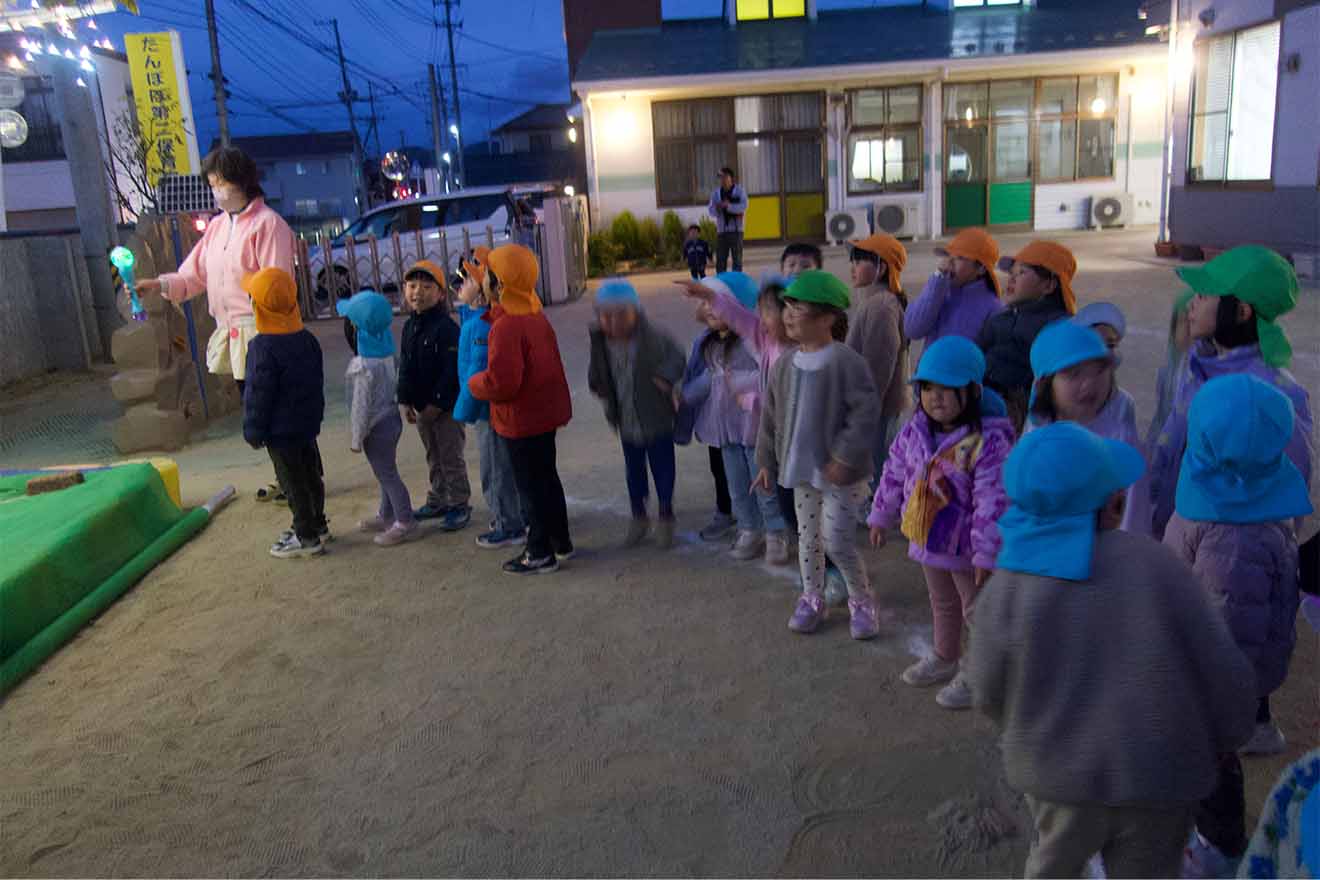 きれいに光る園庭に大変身!!みんなでうっとりと見上げて癒されたひと時でした。