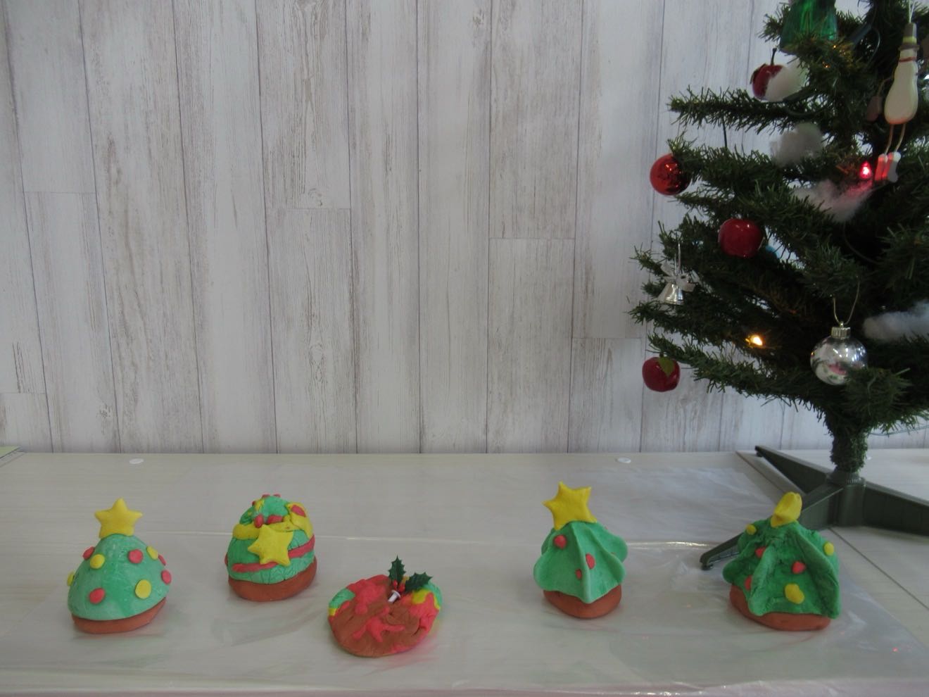 今回も大好評の小麦粉粘土で遊びました。粉を触って感触を楽しんだ子どもたちは、コネコネ、ペタペタをたくさんして素敵なクリスマスツリーができました。メリークリスマス!