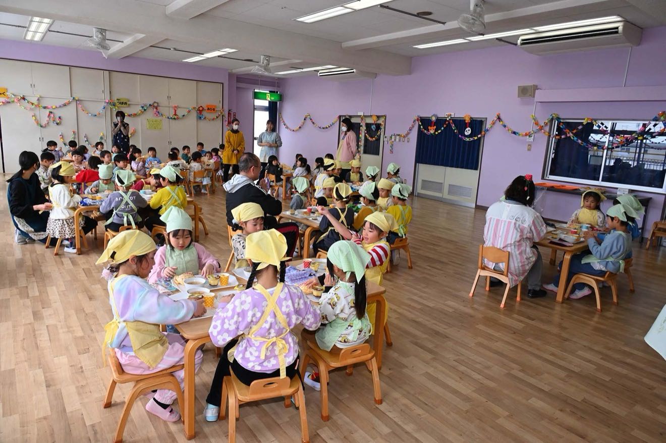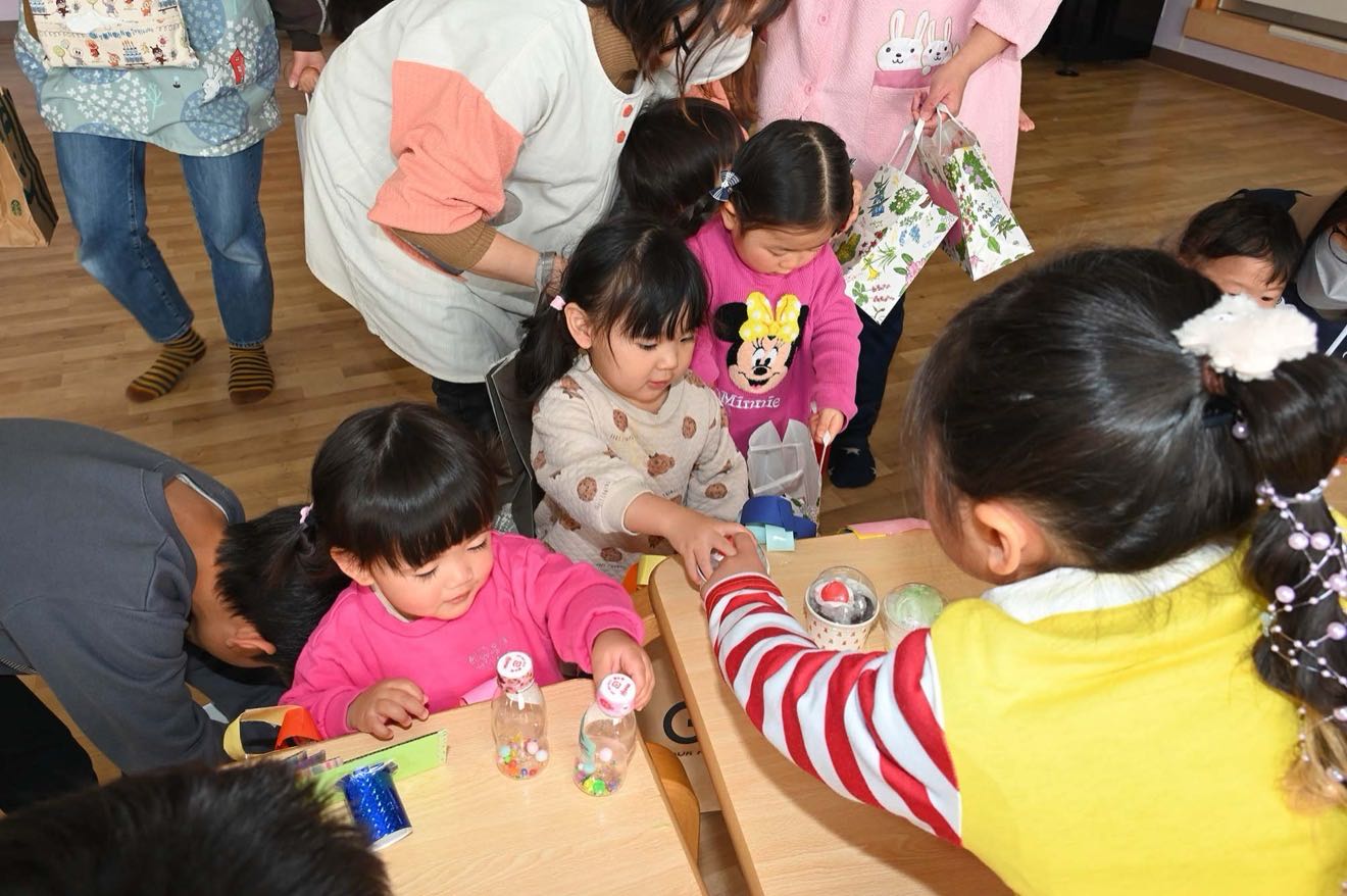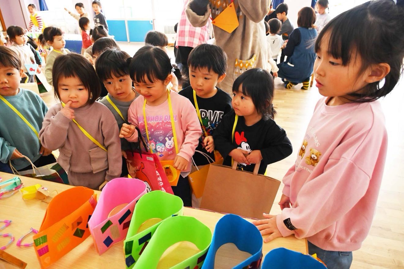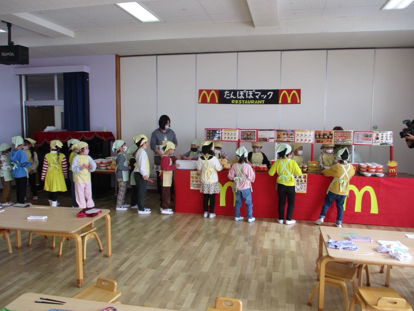 「つくったおもちゃをかってもらえるかな?」 「なにをかおうかな~?」と楽しみにしていたお買い物ごっこ♫ つばめさんがお店屋さんになって小さい組のお友だちがお買い物に行きました。 「いらっしゃいませ」「これください」とお友だちとのやり取りを楽しみました。 そしてお昼はホールがたんぽぽマックに変身!!ハンバーグを頬張り「おいしい!!」楽しかったね。 「おいし~い♡」とたくさん食べる子どもたちでした。